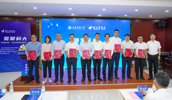 9 月 29 日,由江苏科技大学、镇江高新区党工委与管委会联合主办的 “智汇高新 — 贤聚科大”江苏科技大学-镇江高新区“双高协同”科技成果转化路演活动成功举办。镇江市高新区政府部门代表、创投机构负责人、中国船舶与海洋工程产业知识产权联盟成员、江苏省船舶行业工业协会代表及镇江市高新区船舶海工装备企业负责人等50余人参会。活动聚焦江苏科大船舶海工、新材料、新能源等特色前沿领域的科研成果,推动科技创新与项目转化新路径,探索校地协同发展,以科技成果转化强力推动新质生产力发展。
