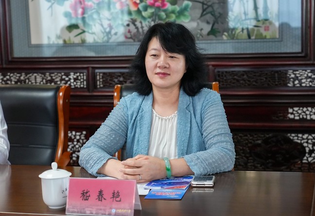 嵇春艳首先对黄美交一行的到来表示热烈欢迎,对海装上海局长期以来给予学校事业发展的关心和支持表示衷心感谢,同时介绍学校基本情况、办学特色,以及近年来在科技创新、学科建设和人才培养等方面取得的成绩。嵇春艳指出,学校和海装上海局关系紧密,一直保持良好合作。学校行业特色鲜明,全力服务国家重大战略需求,提升科技创新能力,提高人才培养质量,为海军建设发展提供全方位的人才和科技支撑。她希望双方未来进一步加强交流、发挥优势,深化合作,合作共赢。