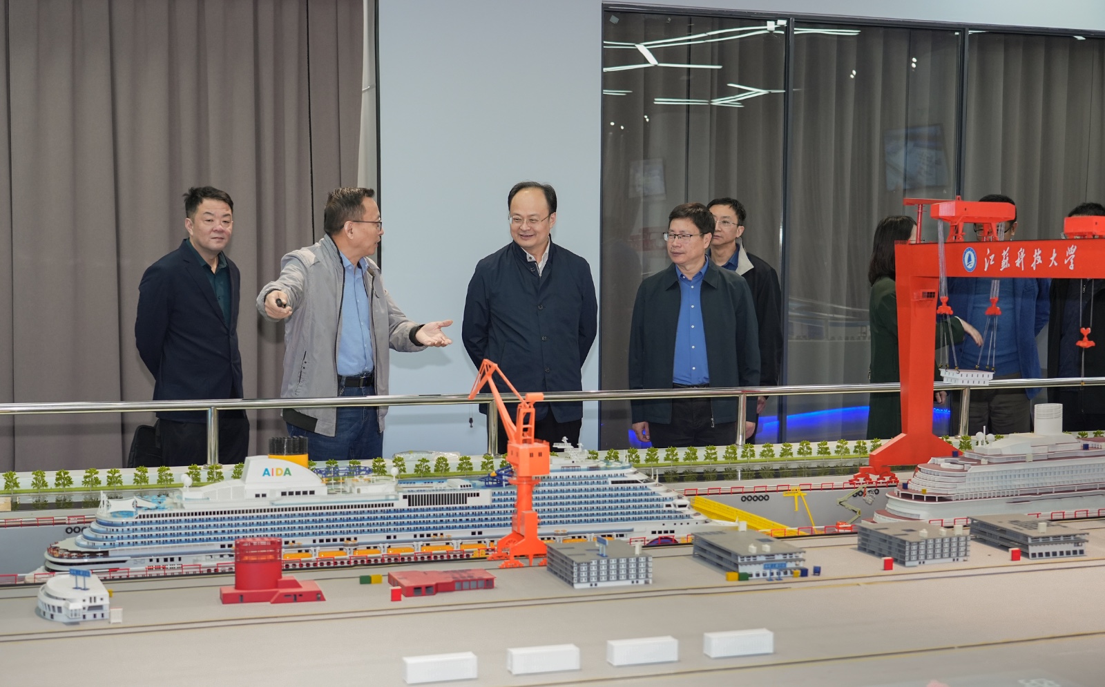 会后,潘锦全陪同李贞强一行参观了学校的船舶文化馆和智慧船厂实验室。